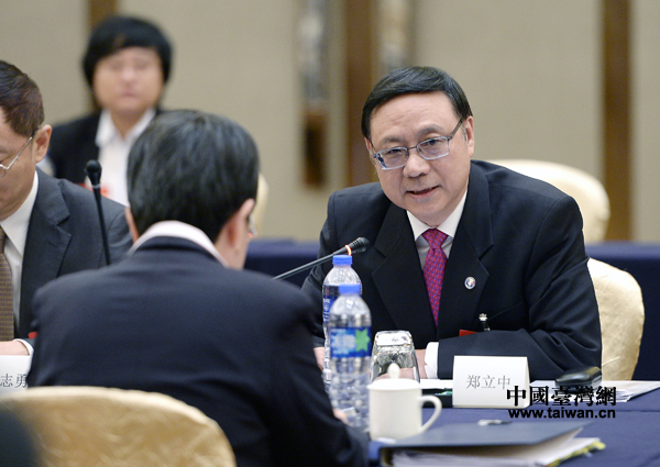 海協會、臺灣;鶗I導人第十一次會談預備性磋商20日下午在福州市舉行。海協會常務副會長鄭立中與;鶗倍麻L兼秘書長施惠芬主持磋商并分別致辭。(中國臺灣網 何建峰 攝)