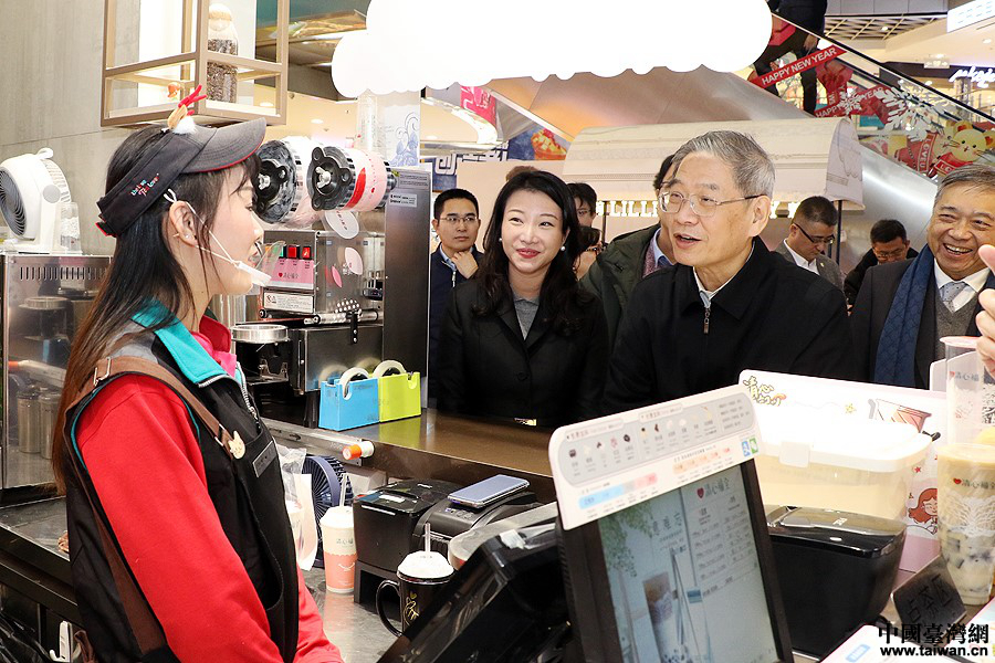 12月30日,海協會會長張志軍在上海日月光中心,與在此經營店鋪的青年親切交流。(中國臺灣網 何建峰 攝)